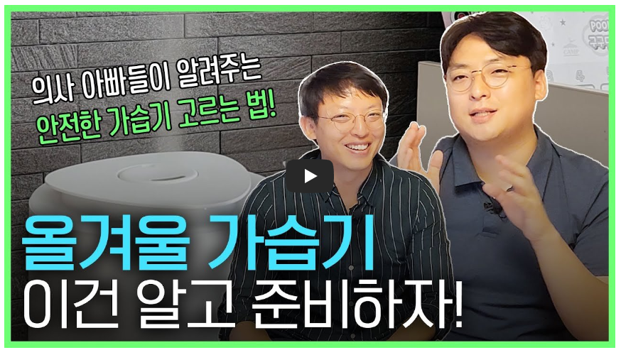 아래 영상을 한번 시청해보시기 바랍니다. 의사 아빠가 알려주는 가장 안전한 가습기를 고르는 방법 입니다.
