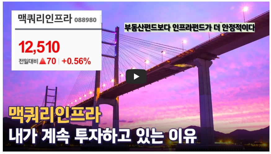 이와 관련해서 맥쿼리인프라 주가 전망 정보가 궁금하시다면 아래 영상을 시청해보시기 바랍니다.